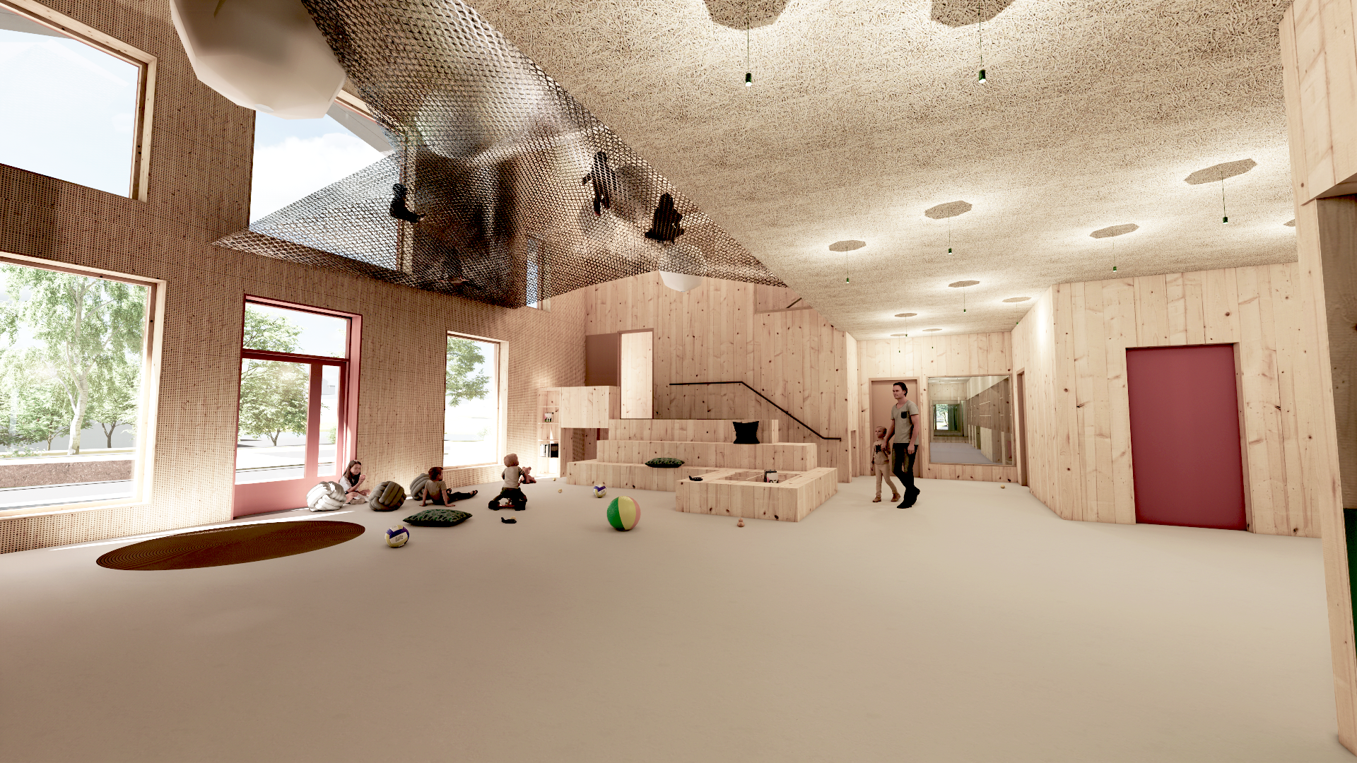 Arkitekturen har tatt barnas lekenhet på alvor. Det er små nisjer og rom som man kan oppholde seg og trekke seg tilbake i, samt at skal kunne skli ned fra plan 2, leke høyt over alle andre i et rom laget av nett.